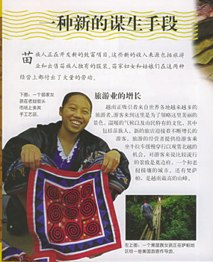 圖為澳大利亞巴特萊特等著的《東南亞的苗族人》一書的插圖。圖片說明說:“一個苗家女孩在老撾街頭市場上賣其手工藝品。” (均為資料圖片)