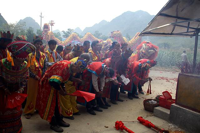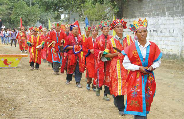 在酬謝自然之神后,由祭司念誦祭文,紀(jì)念民族英雄瓦氏夫人,頌揚(yáng)瓦氏夫人率領(lǐng)將士打擊倭寇的英雄事跡,傳授民族歷史知識,宣揚(yáng)保衛(wèi)家園、謀求平安的民族精神。