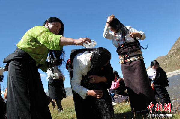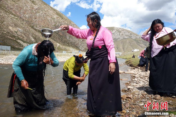每年的夏末秋初,藏族同胞迎來一年一度的“沐浴節(jié)”?!般逶」?jié)”,藏語稱為“嘎瑪日吉”,為期7天。這項(xiàng)古老習(xí)俗已經(jīng)延續(xù)了800多年。西藏流傳民謠,“待到棄山星升起,清凈溫暖好沐浴?!币簿褪钦f,在“棄山星(金星)””照亮雪域高原的七天里,藏族民眾在星光照耀過的水流中沐浴,可祛除身體病痛、心理雜念,全年健康。