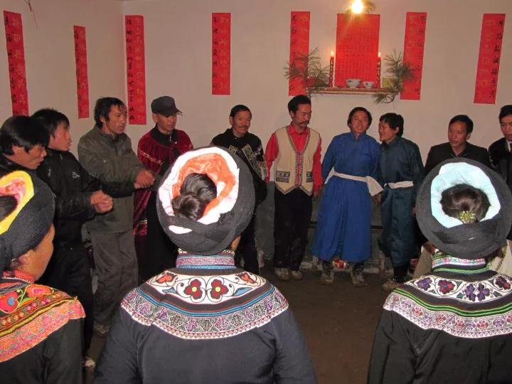 3、源自于宗法禮教。在阿買懇的唱詞中,有阿買懇是君長制定的規(guī)矩之說,根據(jù)彝族典籍文獻記載和民間傳說,反映古代彝族水西君長家和烏撒君長聯(lián)姻嫁娶時,都興阿買懇,說明阿買懇是君長興起這一說法是由根據(jù)的。彝族是一個很重視宗法禮教的民族,各種禮儀習俗和規(guī)章制度比較細密而嚴格,作為人生重大禮儀的婚儀,必然有許多規(guī)矩,阿買懇的幾十項程序性對答吟誦,就足以說明了這一點。但它也并非完全是“君長制定的規(guī)矩”,它更多的是百姓的禮俗和情趣,因為,在阿買懇唱詞中反映的勞動場景的內容很多。實事求是的講,阿買懇應該是由君長所倡導和認可,由廣大彝族民眾興起,經布摩和民間歌師共同創(chuàng)作、經民眾在演唱過程中反復修訂而形成的。
