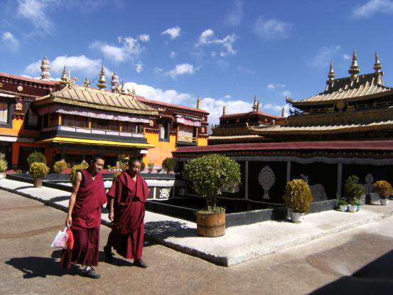 大昭寺位于西藏拉薩市中心。原名惹剎、邏些,后改稱覺康,即“釋迦佛殿”。亦稱“惹沙崔朗祖拉康”,意為“羊土神變寺”。9世紀改為“大昭寺”,意為“放經(jīng)書的大殿”。清代更名“伊克昭廟”。