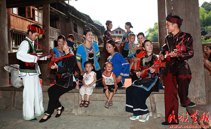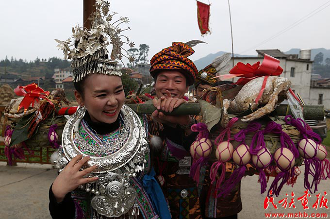 苗族姑娘韋夢迪說:“現(xiàn)在人們生活水平提高了,活動的內(nèi)容也越來越豐富?;顒蝇F(xiàn)場的姑娘若對小伙子有好感,跟過去情況也不一樣了,只要人好就行?!绷侄创迮嗫仆屠先撕喂疰灿幸粯拥母惺埽骸坝浀靡郧靶〉臅r候‘打同年’就是吹蘆笙、跳踩堂舞、對歌,現(xiàn)在‘打同年’活動越來越豐富,還增加了籃球賽、拔河比賽、聯(lián)歡晚會等很多節(jié)目?!泵磕旰倩丶叶家獏⒓印按蛲辍钡膹V西大學(xué)學(xué)生潘金鑫來自融水縣懷寶鎮(zhèn),他說:“通過開展吹蘆笙、踩堂舞、文藝表演等傳統(tǒng)文化活動,加深了大苗山黨群干群之間、村寨各族同胞之間的情誼,增進了民族團結(jié)。我自己也特別能感覺到家鄉(xiāng)的發(fā)展變化,這讓我很自豪?!?/p>