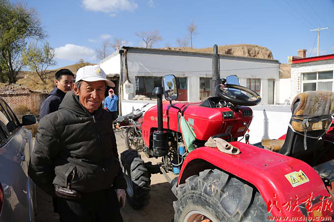 2016年陳綠師花2萬多元,購(gòu)置了拖拉機(jī)和收獲機(jī),其中30%貨款由國(guó)家財(cái)政補(bǔ)貼(陳濤 攝影)