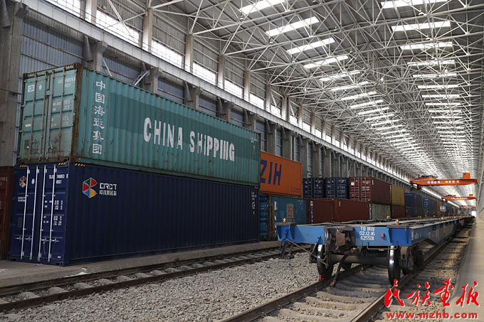 阿拉山口口岸有亞洲最大的“全天候”室內(nèi)集裝箱換裝場(chǎng),年換裝能力20萬標(biāo)箱(滕俊 攝影)