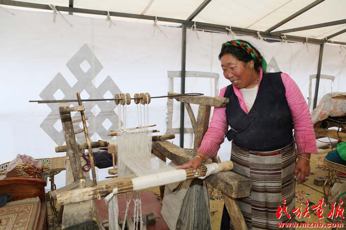 阿妮做氆氌編織已有13年了,村里的手工藝制作合作社為她提供了平臺(tái)(黃若天 攝影)