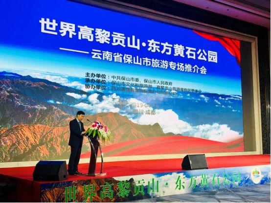 2019年4月10日,“世界高黎貢山·東方黃石公園”保山旅游專場推介會在成都市召開。成都和保山兩地旅游界、航空界、新聞界的嘉賓300多人出席推介會。保山市人民政府副市長宋光興、成都市人民政府副秘書長唐章昭出席推介會并致辭。宋光興副市長指出,成都素有“天府之國”的美譽,自然風光雄奇險秀,民族風情多姿多彩,巴蜀文化積淀深厚,革命歷史可歌可泣,川菜享譽四方,川劇獨具魅力,旅游資源得天獨厚,是一座傳統(tǒng)與現(xiàn)代結(jié)合得最好的城市,是“一座來了就不想離開的城市”。高黎貢山作為全球生物多樣性最富集的地區(qū),有高等植物4897種,動物2389種,垂直高差達4000多米,幾乎分布有中國除沙漠之外的所有陸地氣候類型,是國家級自然保護區(qū),是世界公認的地球上最重要的“物種基因庫”、是具有國際重要意義的“世界生物圈保護區(qū)”,是“三江并流”世界自然遺產(chǎn)的重要組成部分。高黎貢山獨特的地質(zhì)地貌孕育了保山宜人的氣候、優(yōu)良的生態(tài)、富集的溫泉、秀美的風光、多彩的文化和富饒的物產(chǎn),使保山成為云南新興的旅游熱點和宜居城市。希望通過這次旅游推介會,能夠在成都、保山兩地之間架起一座便捷的橋梁,進一步深化兩地文化旅游交流合作,共推旅游線路,共拓旅游市場,實現(xiàn)互惠共贏。
