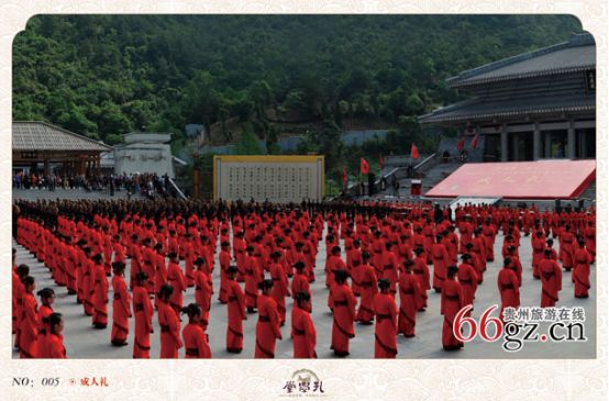 孔學(xué)堂背倚大將山,俯瞰花溪河,建筑面積12萬(wàn)平方米。一期工程于2011年7月3日奠基,2012年9月28日即孔子誕辰2563周年紀(jì)念日落成揭幕;二期工程于2013年10月開工,將于2014年11月竣工。