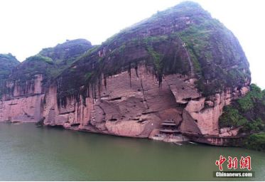龍虎山崖墓數(shù)以百計,全部鑲嵌在仙水巖一帶的懸崖峭壁之上。仙水巖諸峰峭拔陡險,巖壁光滑平展,巖腳下便是瀘溪河,臨水懸崖絕壁上布滿了各式各樣的巖洞,獨特的地理環(huán)境是龍虎山崖墓的基本成因。從瀘溪河舟中或地面眺望,隱約望見一個個巖洞口或釘木樁,或封木板,“藏一棺而暴其半者”多處可見。這些崖墓大多是2500多年前春秋戰(zhàn)國時期古越人的崖墓懸棺,其葬位離水面20至50米以上,高的達(dá)到300余米。在大片巖壁上,洞穴星羅棋布,星星點點,或高或低,或大或小,數(shù)以百計。因這些洞穴高不可攀,無人入內(nèi),其中所藏之物,多少年來一直是一個不解之謎。