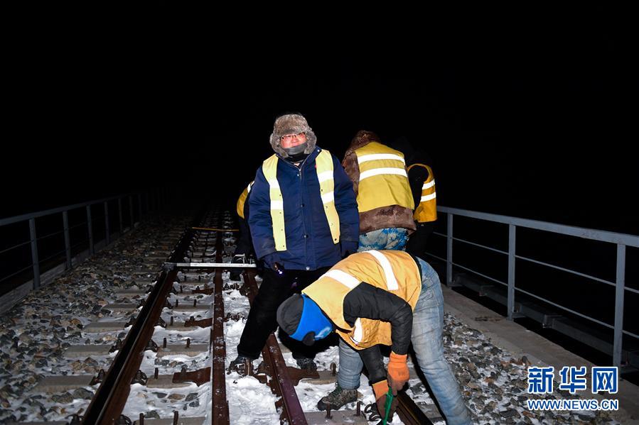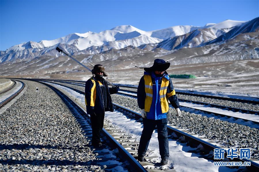1月11日,中國(guó)鐵路青藏集團(tuán)有限公司格爾木工務(wù)段望昆線路車(chē)間的于本蕃(右一)和