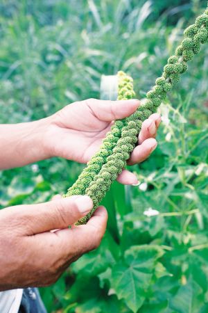 答:我剛開始生態(tài)種植的時(shí)候,很多老品種已經(jīng)沒有了,只有黃豆、辣椒、南瓜、黃瓜這些,其他沒看見人種了。像小米、芝麻,都是后來慢慢收集來的。