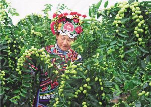 李云燕查看小棗的生長情況。 永仁縣委宣傳部供圖