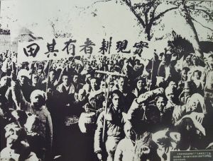 冀中農(nóng)民舉行擁護土地改革運動大會(翻拍于西柏坡紀念館)。 新華社記者 朱旭東攝