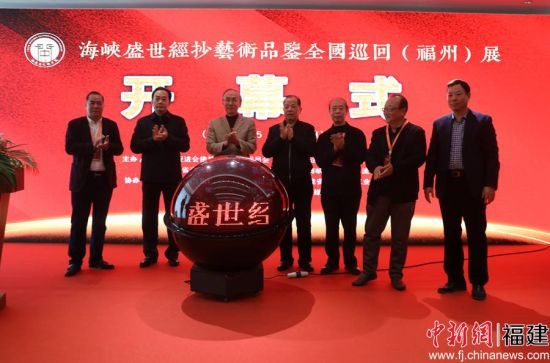 25日上午,以“紹承傳統(tǒng)、弘裕國學”為主旨的海峽盛世經(jīng)抄藝術品鑒全國巡回(福州)展在福州揭幕。