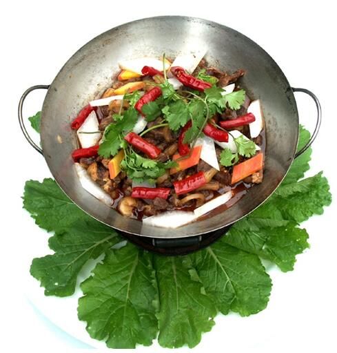 “蘿卜羊”為羅甸布依族人民新創(chuàng)制的一道享譽(yù)縣內(nèi)外的名菜。羅甸山多、雨多、草茂,氣候溫和,在這塊得天獨(dú)厚的適宜于發(fā)展畜牧業(yè)的土地上,當(dāng)?shù)厝罕姵浞掷锰烊徊輬鲑Y源放牧黑山羊。羅甸黑山羊?yàn)榱_甸特有的優(yōu)良羊種,肉質(zhì)細(xì)嫩,無值味,營養(yǎng)豐富,活羊遠(yuǎn)銷廣東、廣西、湖北、湖南、四川、重慶等地。 “蘿卜羊”制作工序并不復(fù)雜,它以黑山羊肉和白蘿卜為主料,配以羅斛辣椒(本地土產(chǎn)辣椒)、木姜、砂仁、花椒等配料,通過合理加工調(diào)配而成。此道菜色澤悅目,羊肉細(xì)嫩,油而不膩,天膻味,蘿卜軟而不爛,營養(yǎng)豐富,口感極佳,食之能強(qiáng)身健體,延年益壽。此道菜為羅甸特有的一道名菜,它不僅為當(dāng)?shù)貜V大群眾所鐘情,亦為四方賓客到羅甸必品嘗的一道美味佳肴。
