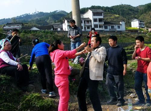 “子孫橋”落成儀式上,主人要給路人發(fā)紅蛋和敬酒勸肉