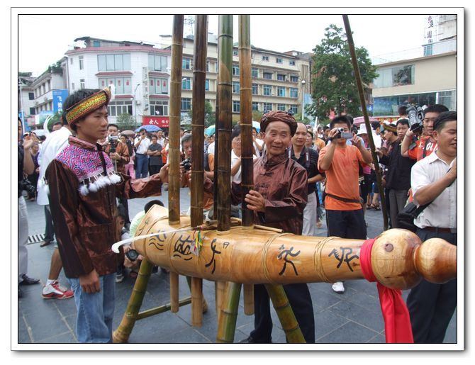 2008年,為慶祝北京奧運(yùn)會(huì)開幕,苗族著名蘆笙師傅梁炳光特制了一把高達(dá)10余米,重達(dá)240余公斤的蘆笙。這把號(hào)稱當(dāng)今蘆笙的王中王、世界蘆笙之最的蘆笙從備料到制作完成,梁師傅足足用了一個(gè)多月。這把蘆笙在北京奧運(yùn)會(huì)期間曾在融水民族廣場(chǎng)展示,萬(wàn)人矚目。