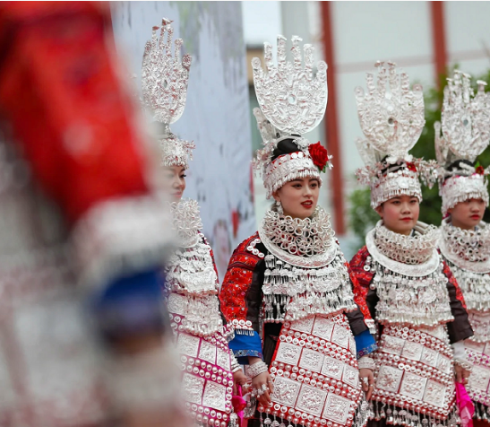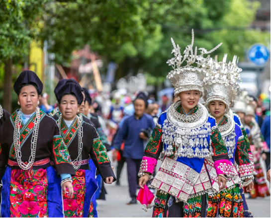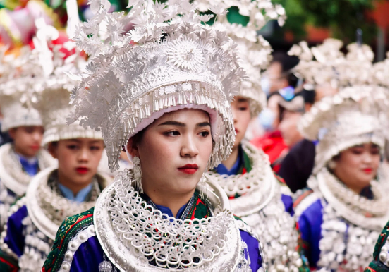 苗族姑娘略施粉黛,身著銀裝,共慶佳節(jié)