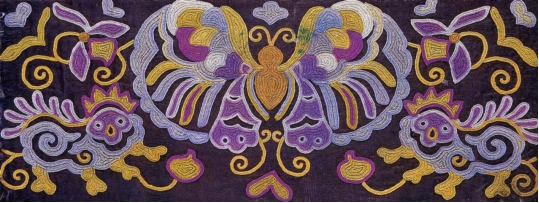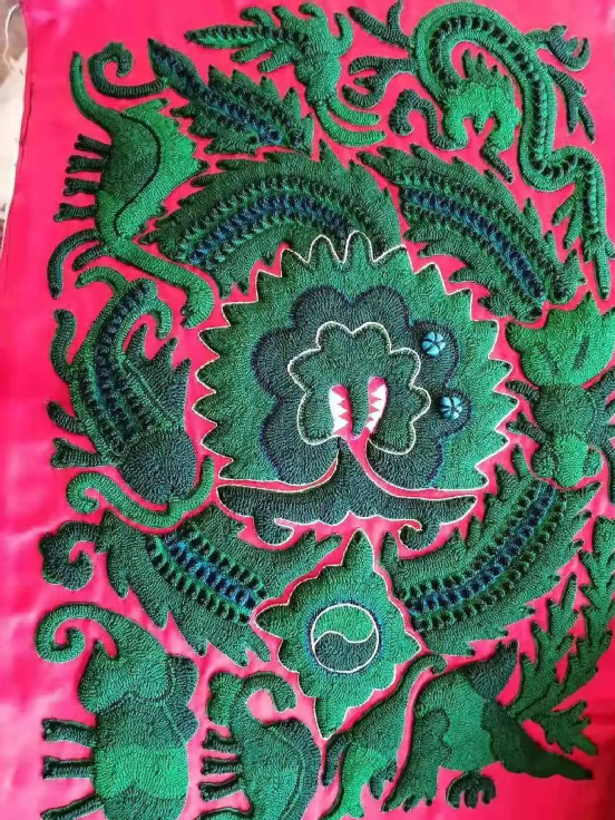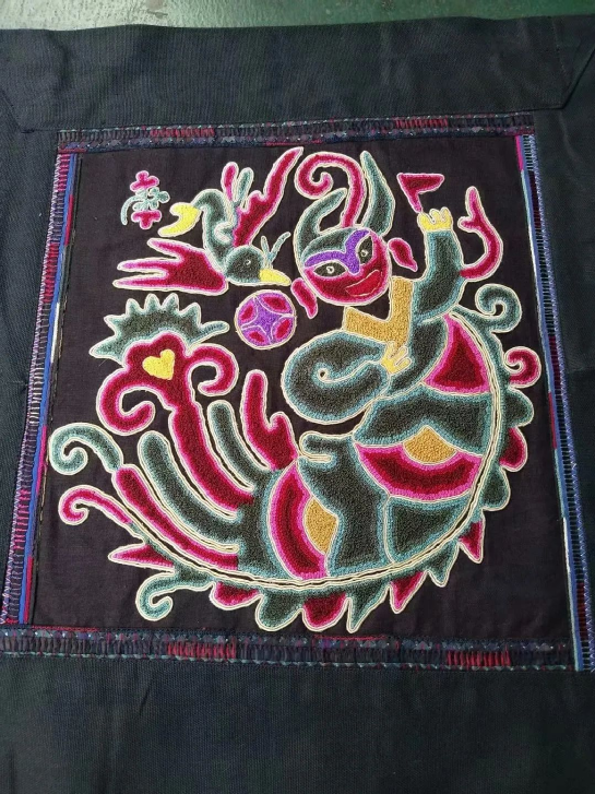 臺(tái)江苗繡的圖畫紋飾豐富,有造型獨(dú)特的飛禽走獸、花鳥(niǎo)魚蟲(chóng),還將人與大自然的其他動(dòng)植物在繡片上融為一體,體現(xiàn)了苗族人民對(duì)自然萬(wàn)物的崇拜,同時(shí)也折射出苗族屢經(jīng)遷徙的歷史變遷。