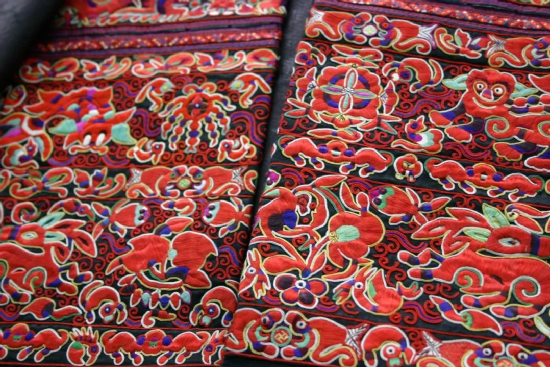 貴州臺(tái)江苗繡是苗族刺繡中最具典型意義的民間藝術(shù)品之一,一針一線,都是東方審美的極致體現(xiàn)。極為大膽的配色,夸張生動(dòng)的圖案,對(duì)稱和諧的紋樣,成就了古樸精致又絢麗多彩的苗繡。每一個(gè)繡娘都有自己的見(jiàn)解,她們借物隨心,見(jiàn)山繡山,見(jiàn)水繡水,花樣百出,栩栩如生!