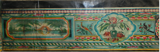 墻圍畫也叫炕圍畫,是一種在炕圍子墻上作畫的民間繪畫藝術(shù)。墻圍畫是北方民間在農(nóng)耕社會基礎(chǔ)上產(chǎn)生的一種地域性很強的裝飾繪畫藝術(shù),具有明顯的實用性和審美價值。墻圍畫主要流行于黃河流域的山西、陜西、甘肅、寧夏、河北壩上以及內(nèi)蒙古中西部一帶,其中達(dá)拉特旗地區(qū)的墻圍畫就是這一民間藝術(shù)的代表之一。