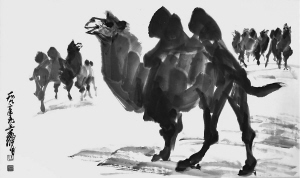 駝隊(duì)背負(fù)著生活的荷載,承載著最原始的物流,古時(shí)候的絲綢之路也是靠駝背馱出來的。浩瀚沙漠,赤地千里,群駝?chuàng)P起高傲的頭,目光炯炯地對(duì)抗西北的烈風(fēng)。人們贊美駱駝,并不是因?yàn)樗鼈グ缎劢〉纳碜?,而是它?duì)惡劣環(huán)境那種淡然的態(tài)度,似乎它們與上蒼有個(gè)剛直的約定,不懼嚴(yán)寒酷暑,不懼路途遙遠(yuǎn),敢與沙塵暴面對(duì)面抗衡。它們?cè)谛凶咧需T就生命的品格,天地之間,駝?dòng)∏壅郏宦废蚯啊?/p>