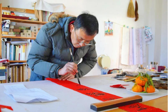 張旭東的童年,是在祖父母的耳提面命中度過的,他跟隨老人習(xí)書繪畫,學(xué)禮明俗。到了弱冠之年,他逐一拜訪古鎮(zhèn)中尚在的民國時(shí)期出生的老輩文人,向他們請(qǐng)教劍川白族傳統(tǒng)民俗,并做了系統(tǒng)梳理,這也為他后來繪制年畫、撰寫春聯(lián)打下扎實(shí)的理論基礎(chǔ)。