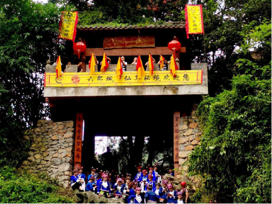 六郎城村屬于喀斯特地貌,四面環(huán)山,山上有整片古木參天的風(fēng)水樹林,山峰外側(cè)懸崖峭壁,山峰內(nèi)部平緩;左邊是陡壁,縱有萬(wàn)千來(lái)犯之?dāng)骋部蓱{借地勢(shì)險(xiǎn)要守住,右邊是六郎城,只要在烽火臺(tái)上點(diǎn)燃狼煙,三五分鐘即可就位嚴(yán)陣以待?,F(xiàn)殘存有青石壘砌石墻、戰(zhàn)壕、瞭望臺(tái)、石碉堡、烽火臺(tái)等古遺址,彰顯獨(dú)特的“沙場(chǎng)”韻味,濃烈的英雄氣息和鮮明的民族特點(diǎn)與神秘濃郁的壯族文化習(xí)俗相交融,形成屬于六郎城自身厚重的民間文化。該村自古以來(lái)具有樂(lè)觀尚上的精神,男女老少擅長(zhǎng)歌舞,壯族風(fēng)俗禮儀濃厚,每年六月初三至初九,都要舉辦別具一格的“六郎節(jié)”來(lái)祭祀楊六郎,祈求保佑平安、健康、豐收;紅白喜事吹拉彈唱、逢年過(guò)節(jié)耍龍、舞獅,跳弄婭歪、銅鼓舞、手巾舞等,其歷史悠久、原始綠色生態(tài)和壯族傳統(tǒng)文化保存得相當(dāng)?shù)耐旰谩?018年,六郎城獲批省級(jí)文明村;同年12月,被評(píng)為文山州第一批“民族團(tuán)結(jié)進(jìn)步示范村”;2019年底被評(píng)為“云南省少數(shù)民族特色村寨”;2020年被評(píng)為云南第一批省級(jí)民族團(tuán)結(jié)進(jìn)步示范村。