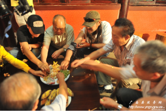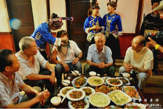 西行音樂公路之旅在享用土司盛宴——“三滴水”后,劇組被壯民族創(chuàng)造的具有深厚民族文化貫穿其中的民族飲食文化所折服,被壯民族熱情好客的情緒所感染。西行音樂公路之旅執(zhí)行導演劉暢說,北京有滿漢全席,想不到在廣南這個地方也有壯族自己的“滿漢全席”,他說,我和我的小朋友們都驚呆了!