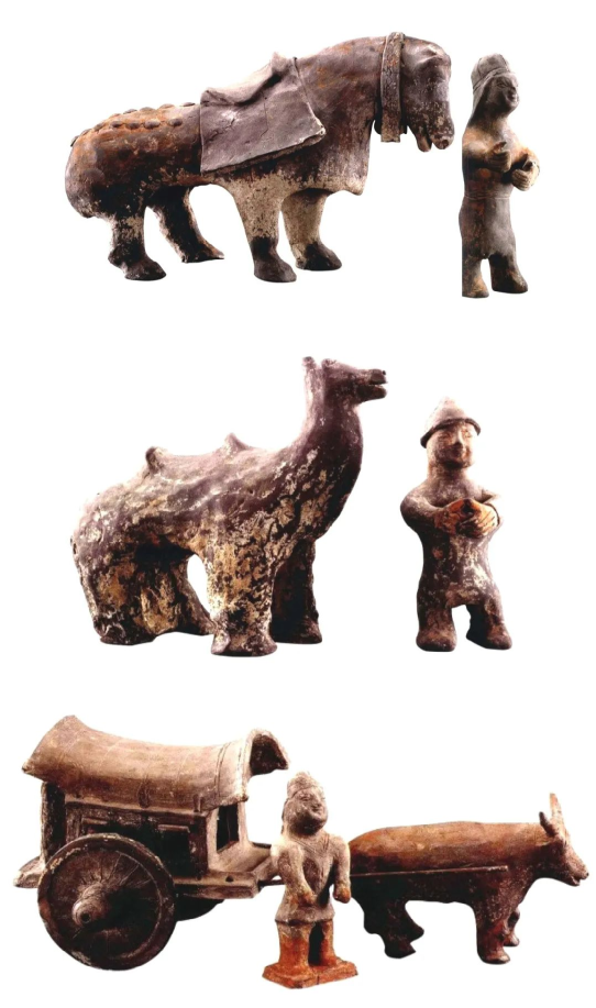 墓葬形制方面,大學(xué)路北魏墓弧方形墓室結(jié)構(gòu),是在中原漢晉方形墓葬形制基礎(chǔ)上,融入了游牧民族圓形穹廬造型因素形成的新結(jié)構(gòu),并對其后的隋唐墓葬也產(chǎn)生了一定影響。隨葬陶器中,根據(jù)陶俑的衣著及相貌,可分辨出既有漢人、鮮卑人形象,可能還有西域胡人形象,體現(xiàn)出當(dāng)時各族人群共同生活的場景;家禽及牲畜等動物形象中,中原定居民族喜見豢養(yǎng)的雞、犬、豬等禽畜類與游牧民族賴以生存的羊、馬、牛及駱駝等牲畜類動物共處的現(xiàn)象,體現(xiàn)了農(nóng)耕和游牧凝于一體的生產(chǎn)生活方式。雖然這座墓葬的墓主族屬身份已無法考辨,但墓葬所體現(xiàn)的民族融合、文化融匯的氣息十分強(qiáng)烈。