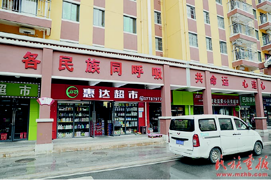 民族團結(jié)標(biāo)語在和諧社區(qū)隨處可見。