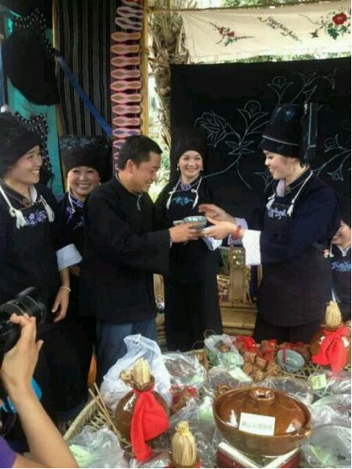 布依族的攔路酒通常都有三、五道,多的可設(shè)12道,真所謂“ 過(guò)五關(guān)斬六將” ,若是酒量平平者,早已望而卻步了。不過(guò),長(zhǎng)安的民族是文明的,你若不善飲,就記住別用手觸摸酒杯,只需將布依姑娘敬上的酒,示意性的飲過(guò)即可過(guò)“ 關(guān)” 。你若是海量,接下酒來(lái),那一碗或一牛角酒就必須喝完。