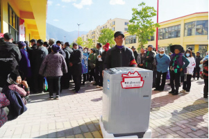 在社區(qū)的樹(shù)新風(fēng)積分超市前,居民們排起整整齊齊的長(zhǎng)隊(duì),不由得讓人好奇。