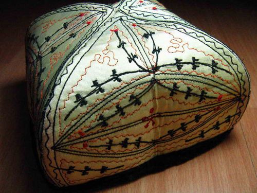 簡(jiǎn)介:新疆兄弟民族的帽子,顏色、帽形是多種 多樣的,最典型的是維吾爾人的綠花帽。它是用手工、絲線(xiàn)繡上花葉圖案的四方棱形的花帽,繡工精致,花葉紋樣富有裝飾美[詳細(xì)]