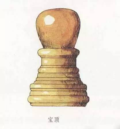 在建筑物的頂部中心位置,尤其是攢尖式屋頂?shù)捻敿馓帲⒂幸粋€圓形或近似圓形之類的裝飾,它被稱為寶頂。在一些等級較高的建筑中,或者確切地說,在皇家建筑中,寶頂大多為銅質(zhì)鎏金材料制成,光彩奪目。
