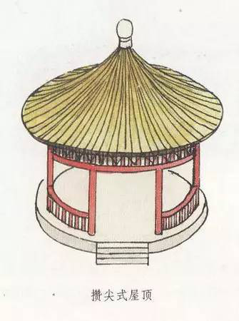 我國古代建筑的屋頂式樣非常豐富,變化多端。等級低者有硬山頂、懸山頂,等級高者有廡殿頂、歇山頂。此外,還有攢尖頂、卷棚頂,以及扇形頂、盔頂、盝頂、勾連搭頂、平頂、穹窿頂、十字頂?shù)忍厥獾男问健T殿頂、歇山頂、攢尖頂?shù)扔钟袉伍埽亻苤畡e,攢尖頂則有圓形、方形、六角形、八角形等變化形式。