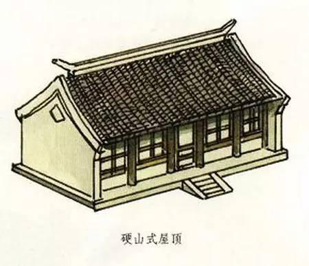 硬山式屋頂有一條正脊和四條垂脊。這種屋頂造型的最大特點(diǎn)是比較簡單、樸素,只有前后兩面坡,而且屋頂在山墻墻頭處與山墻齊平,沒有伸出部分,山面裸露沒有變化。明、清時期及其后,硬山式屋頂廣泛地應(yīng)用于我國南北方的住宅建筑中。正因?yàn)樗燃壉容^低,所以屋面都是使用青瓦,并且是板瓦,不能使用筒瓦,更不能使用琉璃瓦。
