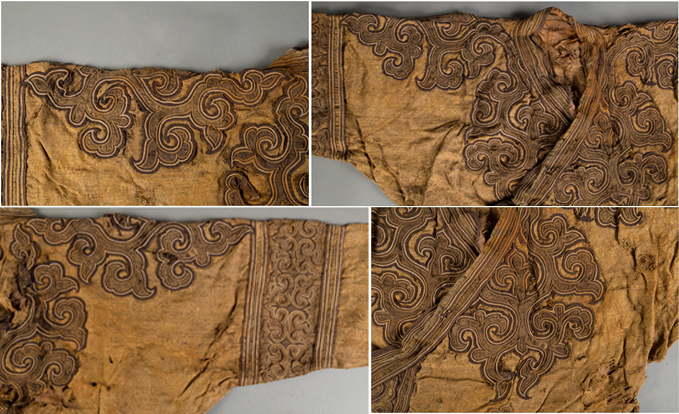 1978年出土于內(nèi)蒙古包頭達茂旗明水墓的蒙元辮線袍 內(nèi)蒙古博物院館藏一級文物