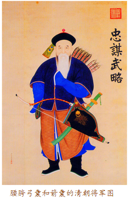 當弓囊出現(xiàn)在眼前時,我們應當想到它的另一半——箭囊。實事上,古代盛裝弓箭的器物被稱為櫜鞬(gāo jiàn),櫜盛箭,鞬裝弓,多以皮革制作。比如明十三陵出土的萬歷皇帝陪葬品櫜鞬,就用皮革縫制,外敷黃色素緞,金繡龍紋,鑲嵌金飾件及各色寶石。一般來說,弓囊為上寬下窄的袋形,箭囊則為長方形。在蒙古語中,弓囊與箭囊合稱為“撒答”。因為“答”與“袋”讀音相近,所以元代的漢族作家便在作品中將之寫為“撒袋”。這樣,“撒袋”一詞便入了漢語詞匯,特指裝弓盛箭的袋子。
