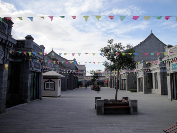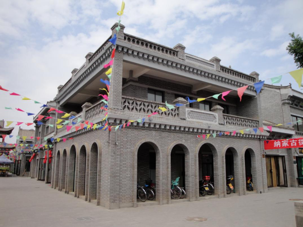 中華回鄉(xiāng)第一街位于永寧縣納家戶北側(cè)。該項(xiàng)目以納家戶清真大寺為中心擴(kuò)展門前廣場(chǎng),以廣場(chǎng)為中心向北,直北長(zhǎng)380米,東西寬107米,占地面積93.78畝,建筑面積1.6萬(wàn)平方米,建成商鋪177套。所有建筑遵循當(dāng)?shù)鼗刈宓慕ㄖL(fēng)格,采用青磚砌筑,尤其在細(xì)節(jié)處理上用符號(hào)、色調(diào)與裝飾來(lái)表現(xiàn)回族建筑的精髓。雕梁畫(huà)棟,飛檐四出,并且在墻壁、牌坊、檐口、山墻等處運(yùn)用了大量磚雕、伊斯蘭花飾等將伊斯蘭文化藝術(shù)與中國(guó)傳統(tǒng)建筑風(fēng)格有機(jī)的結(jié)合在一起,為景區(qū)增加了濃郁的歷史文化氛圍。該街道由北向南依次分為土特產(chǎn)區(qū)、民俗文化區(qū)、旅游紀(jì)念區(qū)、餐飲區(qū)、配套商業(yè)區(qū)五大功能區(qū)。