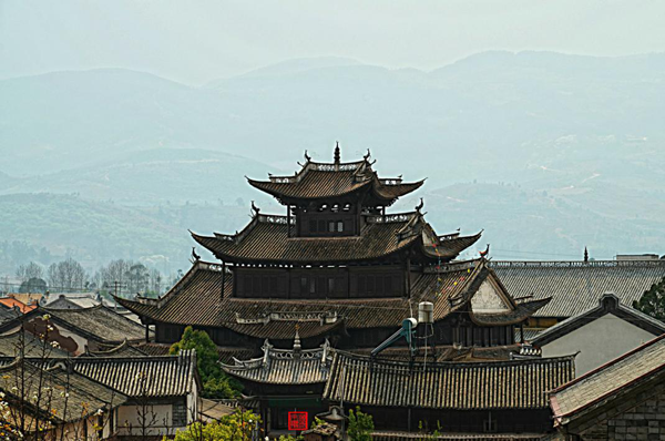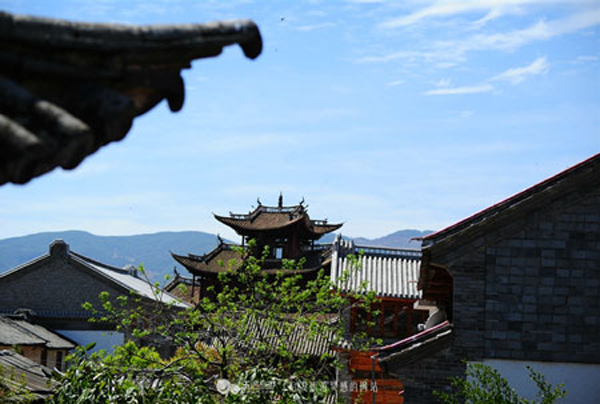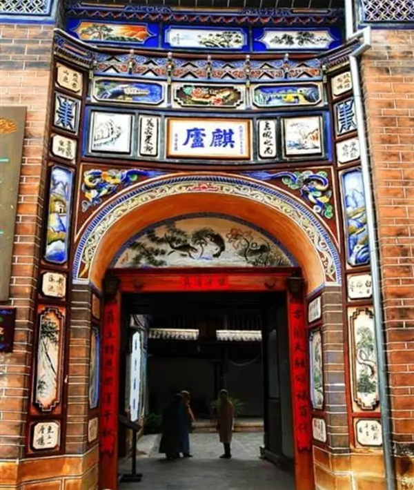 雖然經(jīng)過歲月侵蝕,但院落的每一個角落,無論是精心裝飾的門楣還是匠心獨具的花窗,盡管經(jīng)過了多少年的風(fēng)雨,依然令人感到當年的氣魄和獨有的魅力。在馬如驥大院的二樓,那藻井的彩繪今天依然清晰美麗,有彩繪《三文筆》、《阿文學(xué)校》、《雞足山莊嚴塔》、《上海街景》。特別是彩繪《上海街景》,被專家視為不可多得的珍貴資料,它不僅惟妙惟肖的再現(xiàn)了當年十里洋場上海灘的風(fēng)華,還體現(xiàn)了馬幫商人的開放胸襟和開闊眼界,體現(xiàn)了對現(xiàn)代化生活的向往和對未來的憧憬。