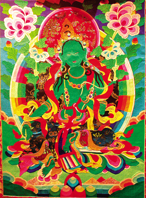 熱貢藝術(shù)是雪域文化和中原佛教藝術(shù)完美結(jié)合的一種獨(dú)特的藝術(shù)形式,是藏傳佛教藝術(shù)中的一個(gè)重要流派,它大體始于元代,距今已有700多年的歷史。熱貢藝術(shù)主要內(nèi)容包括繪畫、雕塑、堆繡、建筑裝飾、酥油花等,其中以繪畫、堆繡、雕塑為主。它們在技法上既繼承了藏傳佛教傳統(tǒng)的創(chuàng)作手法,又融會了漢族繪畫和其它地方的民間藝術(shù),極具觀賞價(jià)值和藝術(shù)價(jià)值。