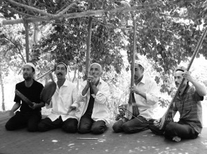 夏季的喀什,空氣中涌動著濕潤的氣息。這個玉石一般潤滑的綠洲一派生機(jī)。在老城夯土滄桑的背影中,一陣憂傷的琴聲在城市上空回蕩,古老的《十二木卡姆》剎那間奏響耳邊?;匚吨鴦偛诺那俾?,感覺就是它——沙它爾,只有它的憂傷才會讓木卡姆如此動人心弦。