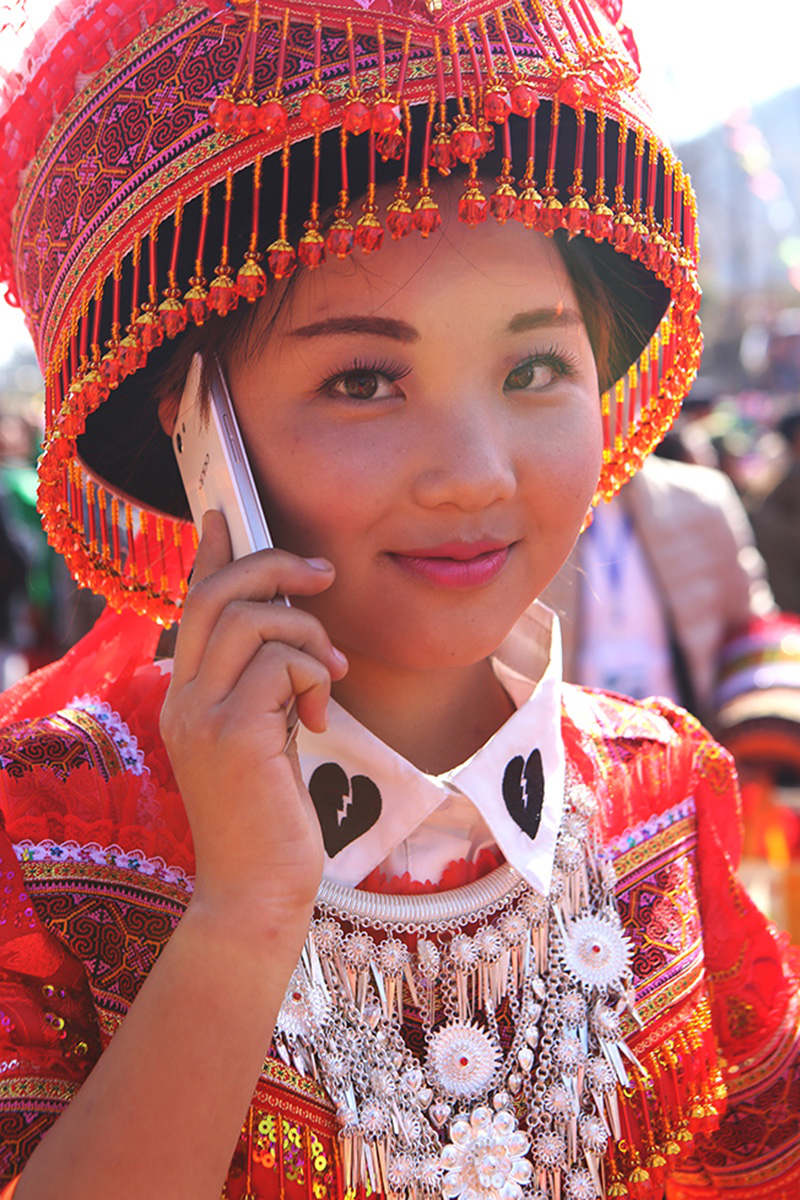 由于在歷史上經(jīng)歷長(zhǎng)時(shí)間、大范圍的遷徙,苗族文化形成了較強(qiáng)的環(huán)境適應(yīng)能力和流動(dòng)變遷特征。節(jié)日作為民族文化的凝集點(diǎn),慶祝方式和形態(tài)也處于動(dòng)態(tài)的演變和傳承之中。在大布紅的花山場(chǎng),一個(gè)從老撾過(guò)來(lái)的苗族女子樂(lè)隊(duì)讓當(dāng)?shù)氐拿缱迦烁械胶闷妗f(shuō)著同樣的西部苗語(yǔ),卻穿著略顯不同的衣服。她們排成一行,教人們一來(lái)一往地扔繡包,一時(shí)間圍觀者無(wú)數(shù)。不消多久,女子樂(lè)隊(duì)手中的CD就在人群中銷售一空。