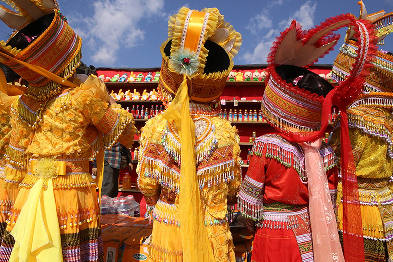 經(jīng)過層層選拔出的100名繡娘在此飛針走線,同秀技藝,展現(xiàn)了少數(shù)民族民間文化獨特的藝術(shù)魅力。