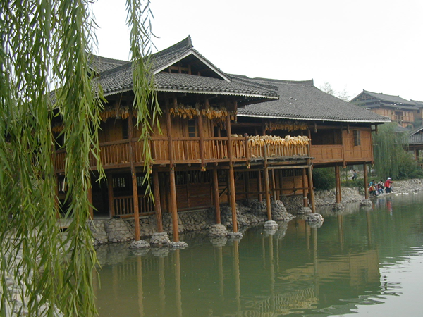 壯族多聚居在崎嶇的山區(qū)和群峰之間的丘陵地帶,壯族人民因地制宜創(chuàng)造了獨(dú)居特色的干欄式建筑。壯語(yǔ)稱(chēng)屋為“欄”或“干欄”。干欄建筑使用木(或竹)柱做成離地面相當(dāng)高的底架,再在底架上建造住宅。樓上住人,樓下豢養(yǎng)牲畜和貯存物件。這種住宅適于潮濕多雨,地勢(shì)不平的南方山區(qū)。