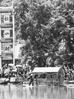 廣西桂林恭城瑤族自治縣“五一”期間在平安鄉(xiāng)社山村、蓮花鎮(zhèn)紅巖村等旅游景點(diǎn),舉行了瑤家小鍋米酒坊、原生態(tài)腐竹制作體驗(yàn)、瑤族水上婚嫁表演等活動(dòng),豐富了群眾的文化生活。圖為獨(dú)特的瑤族水上婚嫁表演,吸引了許多游客駐足觀賞。