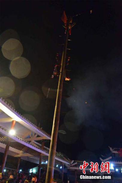 12月6日夜晚,在中國(guó)瑤族之鄉(xiāng)廣西金秀瑤族自治縣的盤王節(jié)上,當(dāng)?shù)噩幾灏傩胀ㄟ^祭盤王、還盤王愿,祈求風(fēng)調(diào)雨順、五谷豐登