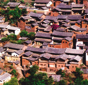 古城的村鎮(zhèn)入口處都有幾棵枝繁葉茂的大榕樹,村內(nèi)尚存仍在使用的古老水井。道路通達(dá)四方,民居互相毗連,沿街巷修建,每院的墻角與對(duì)方的墻角錯(cuò)讓。從蒼山流下的小溪穿村而過(guò),巷巷流水潺潺,家家種樹養(yǎng)花,真可謂“村旁綠樹繞清流,園中桃李結(jié)碩果,院內(nèi)蘭桂飄幽香”。