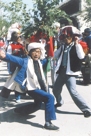 領(lǐng)隊(duì)的老者跳起執(zhí)樹舞