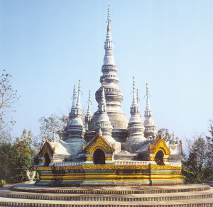 云南勐龍曼龍飛筍塔。勐龍曼飛龍筍塔始建于公元1204年,塔群造型緊湊,挺拔多姿,諸塔擁立,猶如雨后春筍,故得名。主塔尖端是銅制的風笛,小塔頂部掛有銅制佛標式的風鈴,山風吹來,大小塔清脆的應和聲響引人遐想。
